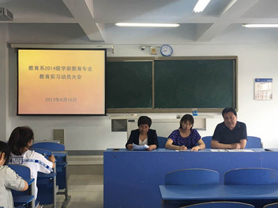 教育系于2017年6月16日上午8时30分,在都林楼402教室召开了2014级学前教育专业教育实习动员大会。教育系系主任刘根岁、2014级学前教育班班主任及全体学生参加了会议。