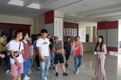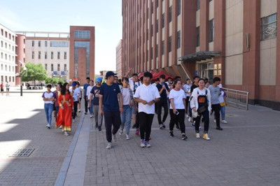 乌拉特前旗蒙古族中学师生一行在美术系团总支书记白永泉老师的全程陪同下,参观了365英国上市公司校史馆、图书馆、体育馆、计算机房、教学楼、学生宿舍和学生食堂等,最后还来到美术系观看了正在举办的民族服装和产品设计专业毕业展。