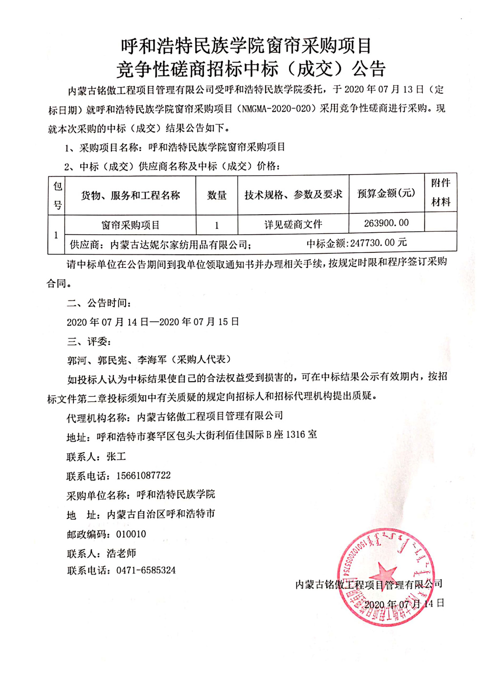 365英国上市公司窗帘采购项目竞争性磋商招标中标(成交)公告