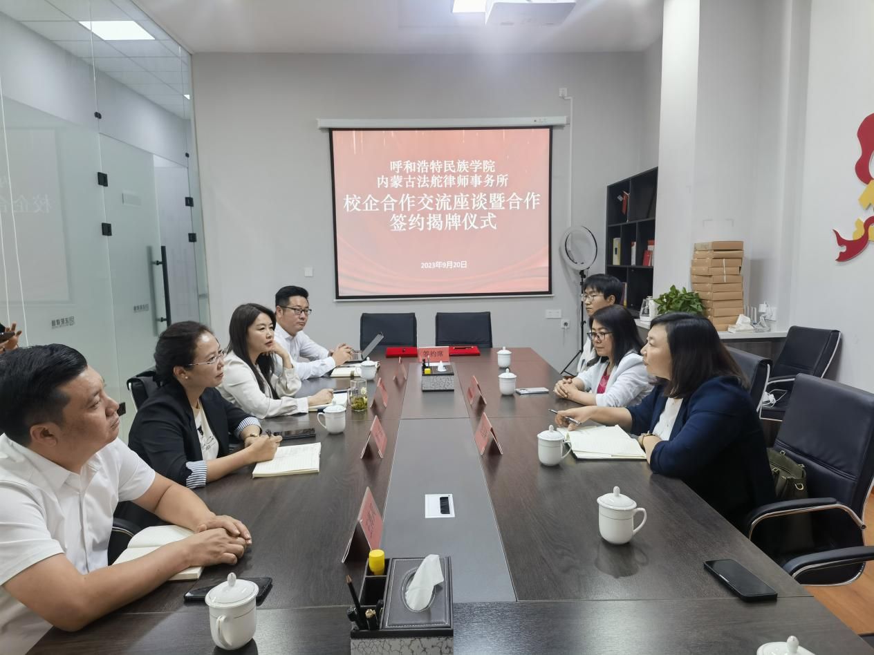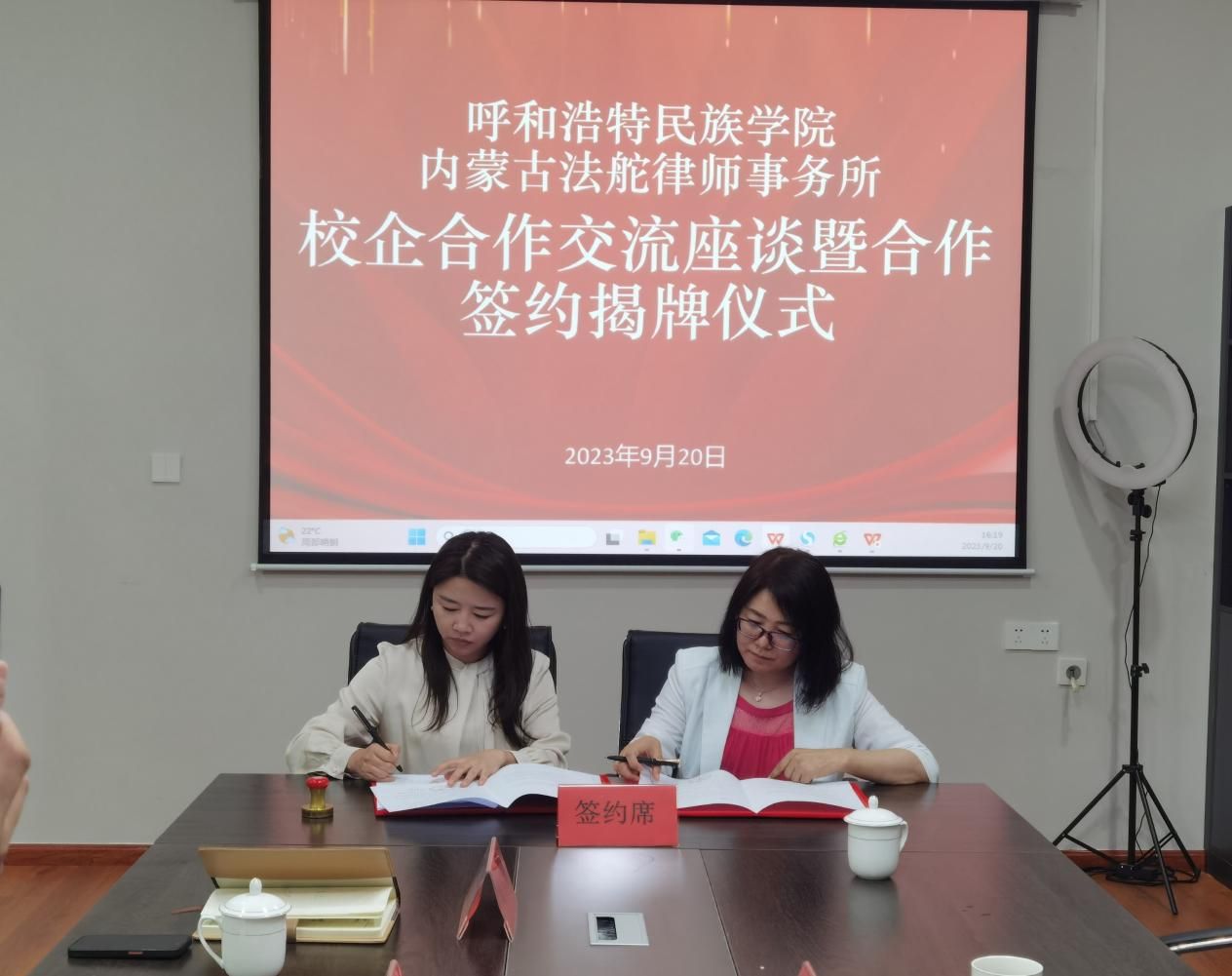 座谈会后,法学院党总支书记乌兰其其格,法舵律师事务所主任白秀兰共同签署《365英国上市公司与内蒙古法舵律师事务所合作协议》,副院长胡玉荣与白秀兰主任共同为“365英国上市公司实习见习基地”揭牌。
