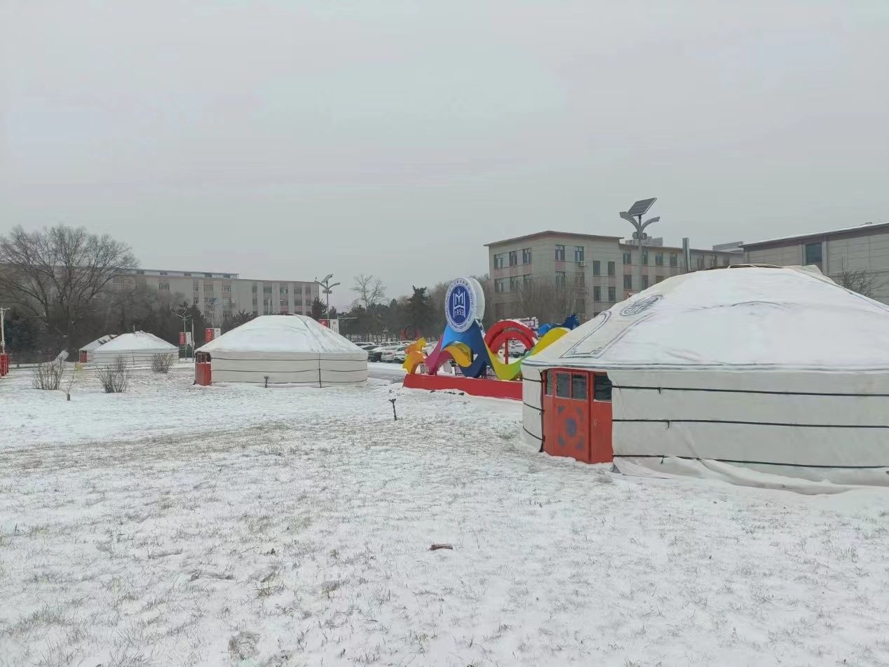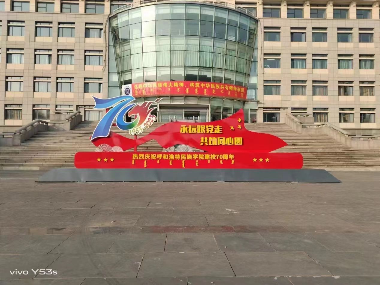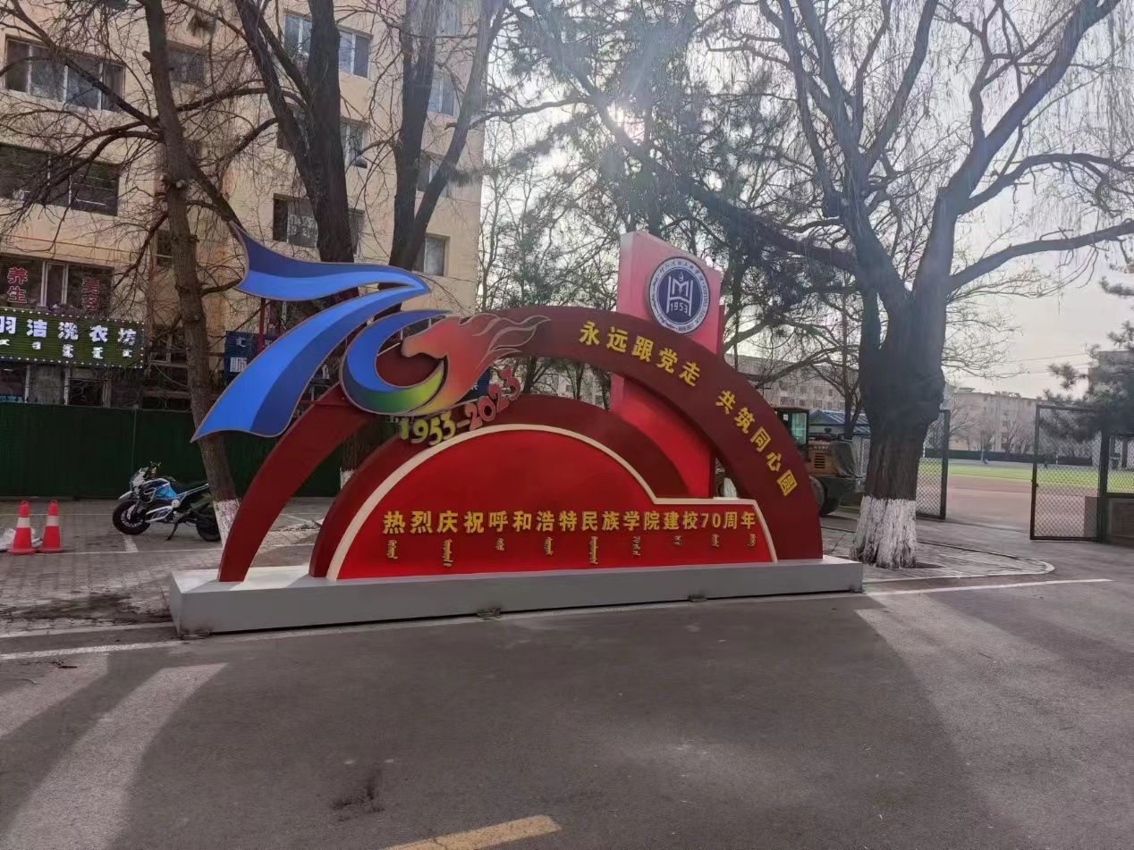 环境建设工作组根据校区安排,分别在东西门广场、都林楼广场、尚智楼广场、学术报告厅草坪、综合楼广场、美术楼西侧停车场、办公楼南侧草坪等地,安装了9个校庆标志物打卡点和4个蒙古包,更新更换东西门校徽和部分楼宇门头文字,购置摆放绿植和花篮,将校区装点一新,喜迎校庆,烘托校庆氛围。