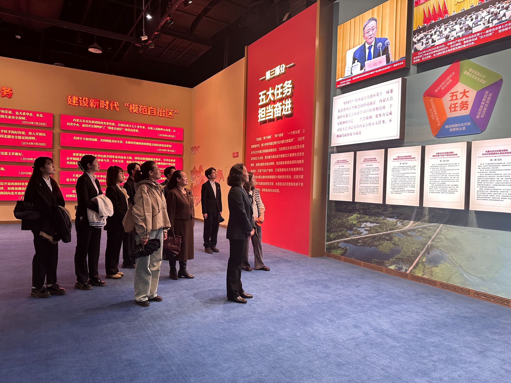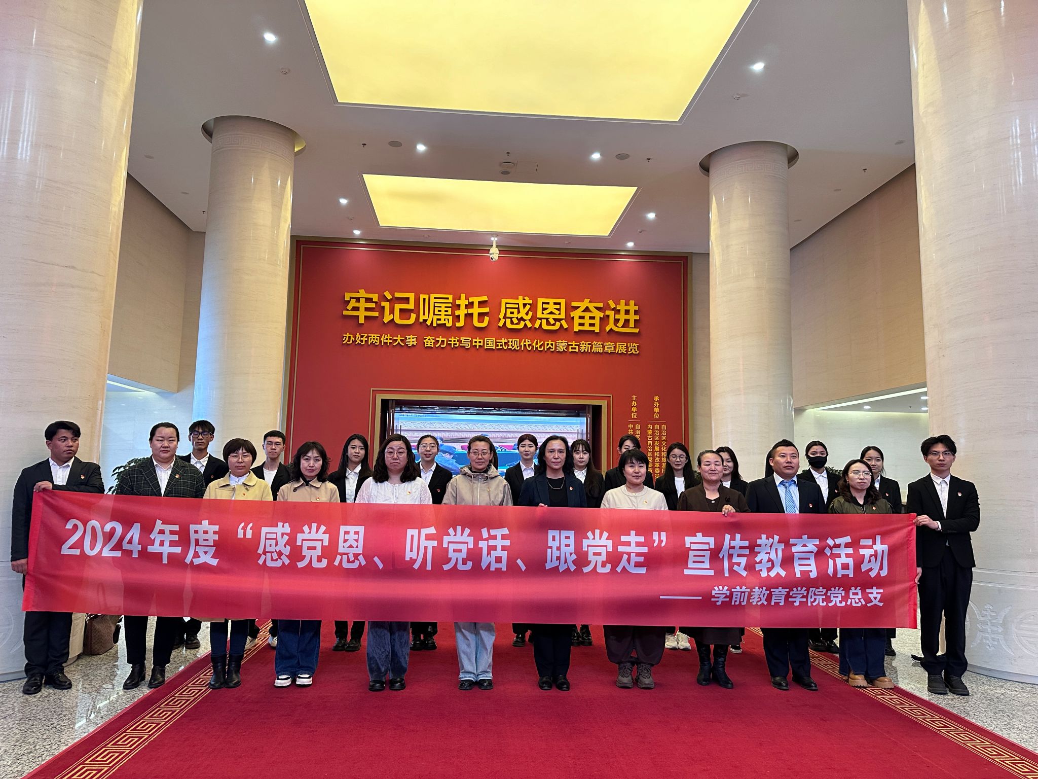 为深入学习贯彻党的二十大精神,进一步推动“感党恩,听党话,跟党走”群众教育实践活动走深走实,4月19日,学前教育学院党总支书记娜仁其木格带领学前教育学院教工党支部和学生党支部的全体党员、入党积极分子、“青马工程”培训班学员代表走进内蒙古展览馆,开展了以“感党恩,听党话,跟党走”为主题的党日活动。