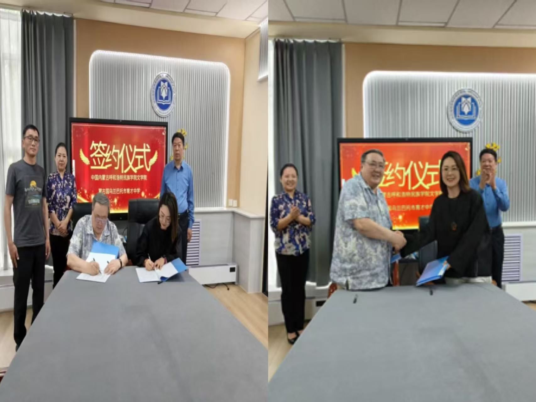 随后,文学院与蒙古国育才中文学校签署合作意向协议,拟在毕业生就业、学生实践、师生交流、共建平台等方面建立长期合作关系。