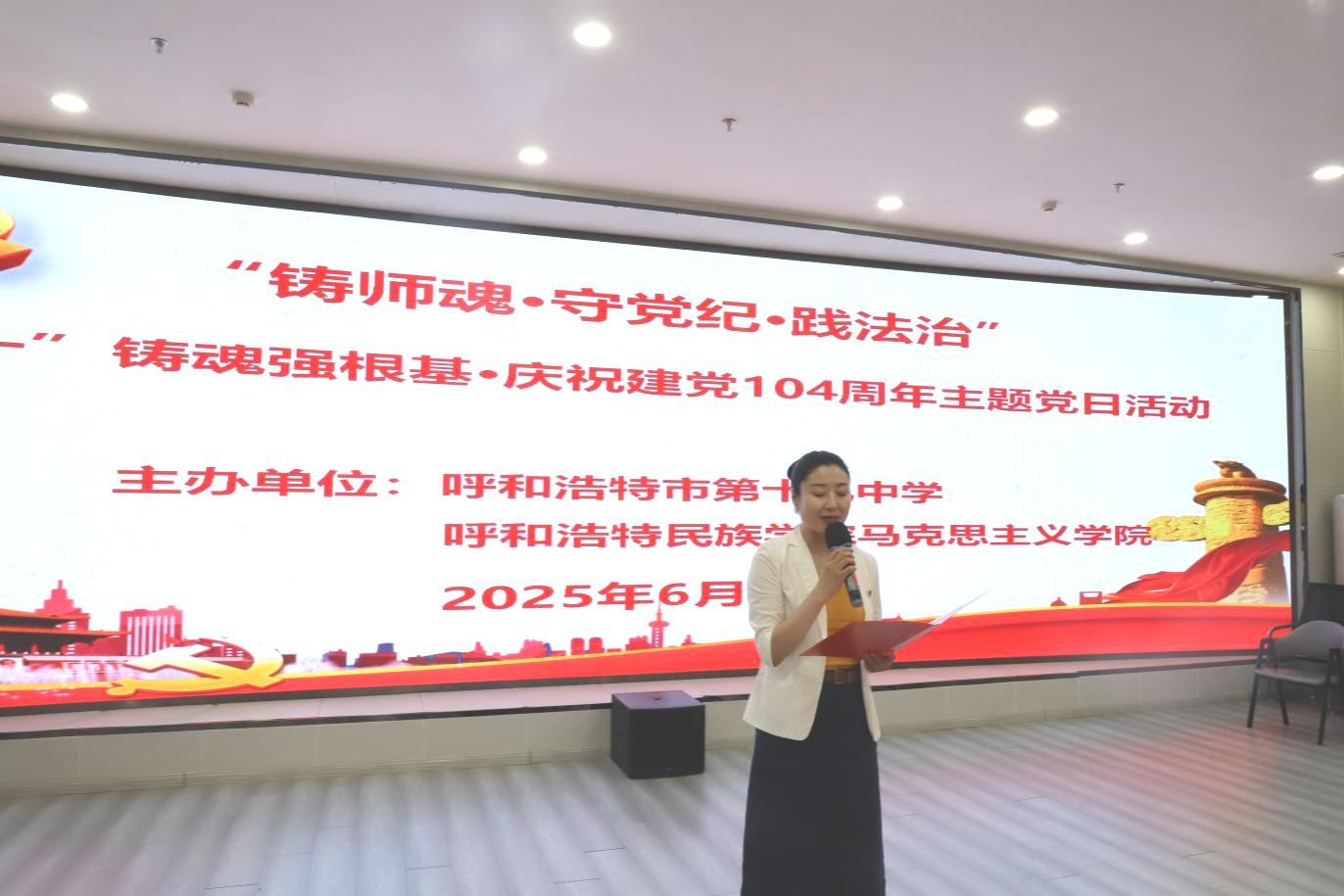 为庆祝中国共产党成立104周年,深化思想引领,推动党建与业务深度融合,6月28日,365英国上市公司统战部、马克思主义学院携手呼和浩特市第十九中学,联合开展“铸师魂 强根基 践法治”主题党日活动。来自三个单位及部门的党员教师、入党积极分子、思政名师工作室成员,以及团员、少先队员代表齐聚一堂,共同接受思想洗礼,凝聚奋进力量。