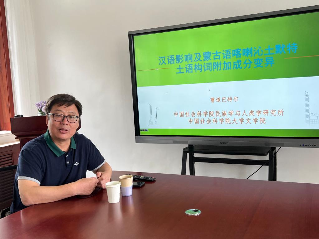 6月19日上午,蒙古学学院(翻译学学院)邀请了中国社会科学院民族学与人类学研究所研究员,中国社会科学院大学教授曹道巴特尔为蒙古学学院(翻译学学院)作了题为《汉语影响及蒙古语喀喇沁土默特土语构词附加成分变异》的学术讲座。此次讲座为蒙古学学院(翻译学院)2023年度学术讲座第一讲,讲座由院长王福清主持,院全体老师和部分学生参加了本次讲座。