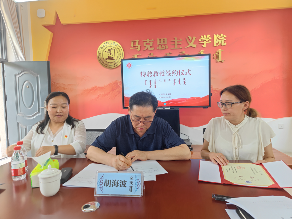 6月30日,马克思主义学院先后举行了特聘教授签约仪式暨一流课程与团队建设交流座谈会。在特聘教授聘任签约仪式上,聘请东北师范大学马克思主义学院书记、教授、博士生导师胡海波为学校特聘教授。学院党总支书记吴美荣、副院长赵梅兰、党总支副书记韩琼出席会议,马克思主义学院部分教师参加会议。