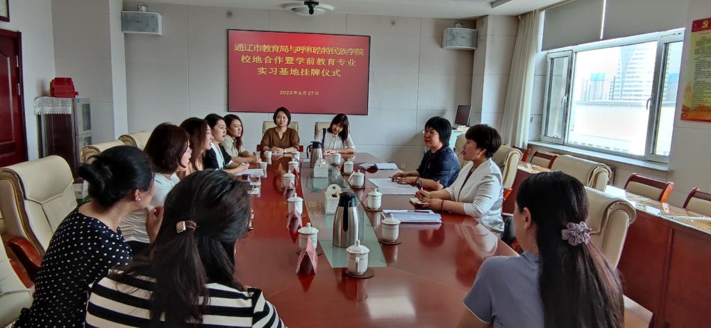 在为期五天的调研中,我院分别与赤峰市教育局、通辽市教育局、扎鲁特旗教育局、阿鲁科尔沁旗教育局、各旗县相关幼儿园进行了主题座谈会。萨日胡副书记着重介绍了我院学前教育专业建设情况,朱乌英嘎副院长指明了本次调研的目的及合作意向,并与相关幼儿园负责人就实习实训、人才培养、岗位需求、教师互聘等方面进行了深入详实的交流。