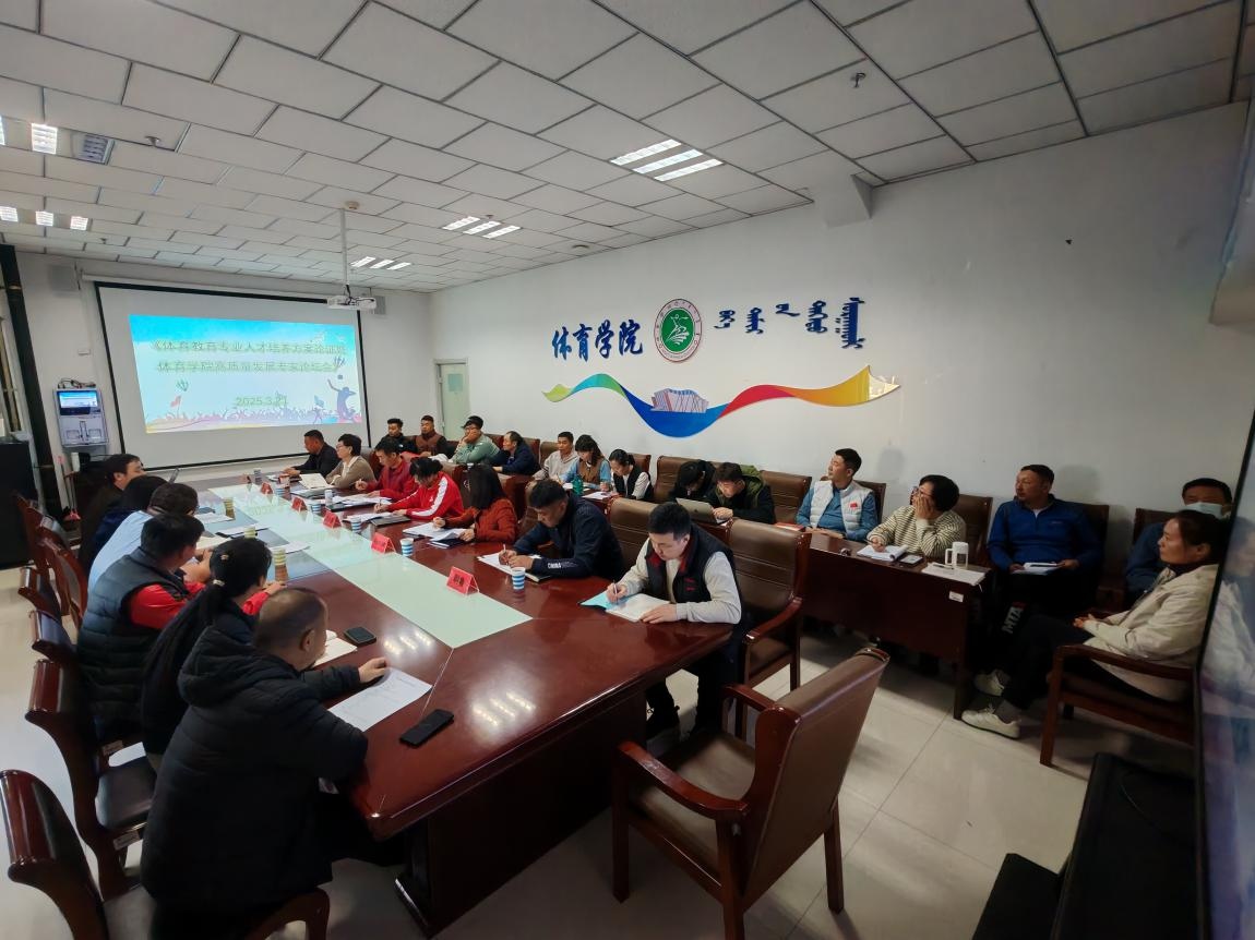 3月21日,体育学院在体育馆三楼会议室成功举办高质量发展专家论坛会。本次论坛聚焦体育学科前沿与发展趋势,汇聚多方智慧,为学院高质量发展出谋划策。本次论坛邀请到四位体育学院引进的银铃教师,教授王桂忠、教授乌云格日勒、特聘教授刘少英、柔性引进教授高娃。呼和浩特市第十七中学一级体育教师朝鲁也受邀参会,与学院全体教师共同交流研讨,碰撞思维火花。会议由学院院长乌日根牧仁主持。