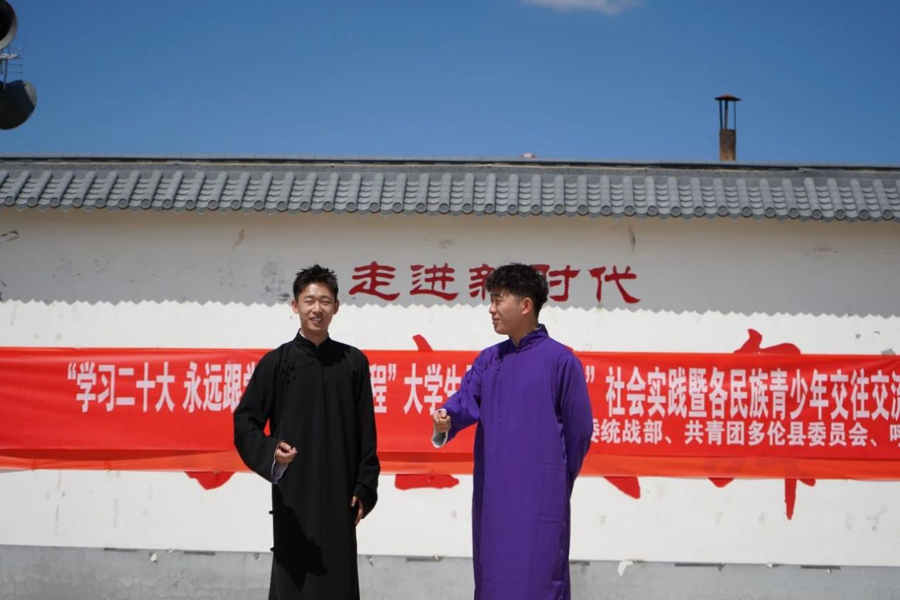 社会实践团首先在多伦县职业教育中心礼堂进行交流演出,开展文化传播、民族理论与民族政策宣讲;随后,社会实践团前往多伦县双井子村参观便民服务大厅和村史馆,并为村民表演节目,助力乡村文化建设;7月12日队员们前往武警中队、善因社区、颐康养老院与山西会馆等基地,送文艺走进基层,与老人亲切交流,重走革命路线,发扬革命精神。