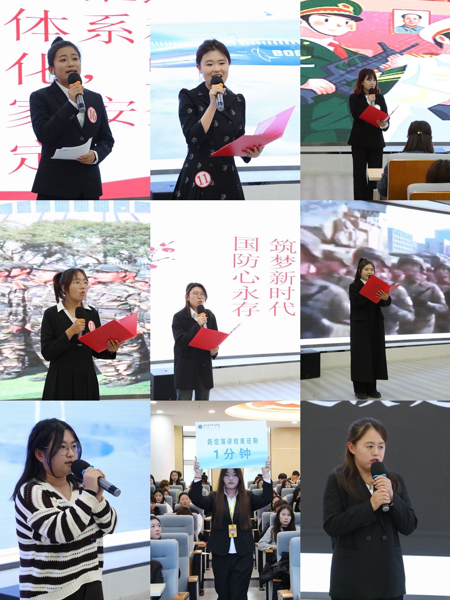 本次比赛经过各学院初赛,选拔出17名选手进入到学校决赛。比赛中,选手们紧紧围绕“爱我国防”主题,用饱含青春向上的活力和挥洒自如的举止动作,更用着慷慨激昂的措辞吸引着了评委和台下各位观众的阵阵掌声。他们各展风采,挥豪才情,竞争激烈。一篇篇热情洋溢的演说,一句句动人心弦的话语,充分展示了当代大学生真挚深厚的爱国情怀。