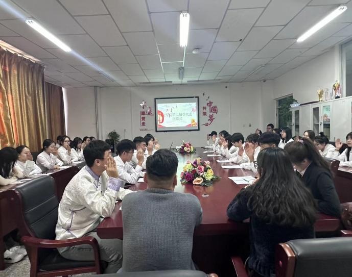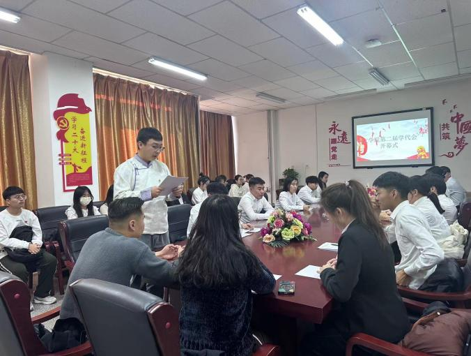 12月12日,文学院第二届学生代表大会在尚智楼112会议室顺利召开。团总支书记刘晓、辅导员宝力尔、校学生会主席团成员及全体学生代表参加,会议由学生代表小峰主持。