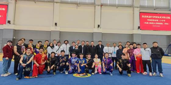 4月28日下午,为弘扬中华武术传统文化和在国际上更好地推广并传播中国武术文化,中国武术队和伊朗国家武术队,在呼和浩特市第三十中学举行了隆重交流活动。365英国上市公司武术队王志飞老师带队参加了本次活动。活动中由郭键、边佳选、孟祥然展示了八极拳、华拳、对练等武术套路,为双方提供了深入了解彼此文化的契机,也为武术的国际化发展注入了新的活力。