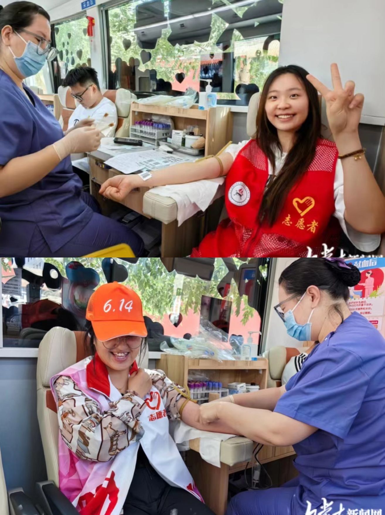 经济管理学院吴日涯等25名志愿者在现场通过登记、量血压、化验、抽血等步骤,其中13人符合献血条件,他们共计献血4000毫升。