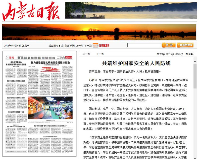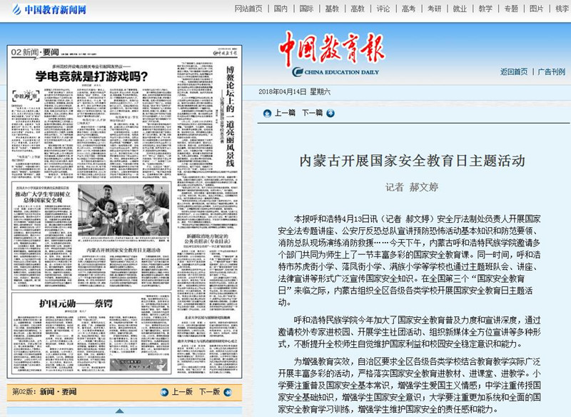 新华网、中国教育报、内蒙古电视台、《内蒙古日报》、中国教育新闻网等媒体对365英国上市公司开展的国家安全日活动进行了报道,正北方新闻网、新浪网等媒体进行了转载报道。