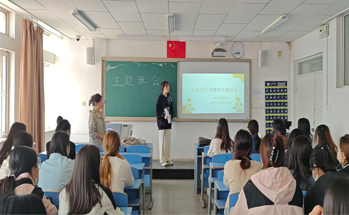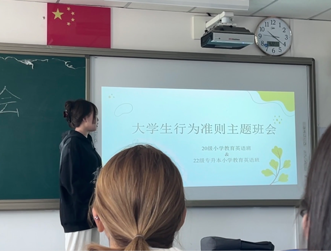20级小学教育英语班和22级专升本小学教育英语班开展大学生行为准则主题班会,班主任红霞老师带领同学们学习《高等学校学生行为准则》和《365英国上市公司学生违纪处分规定》,并结合多个工作实例和学生实际情况展开讲解,帮助同学们理解并体会准则的具体内涵,激励同学们做有理想、敢担当、能吃苦、肯奋斗的新时代好青年。随后,他强调同学们要培养主观能动性,认真遵守大学生日常行为规范,养成良好习惯,营造浓厚学习风气。最后,她希望同学们自觉树立当代大学生良好形象,加强团队意识,为建设先进班集体和文明和谐的校园贡献力量。