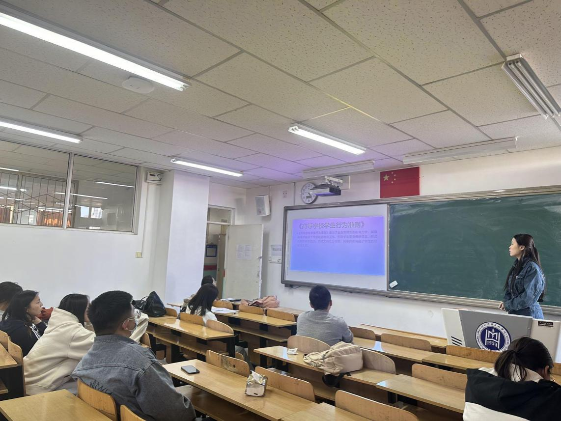 21级小学教育英语班开展大学生行为准则主题班会,在会上全体同学集体学习《高等学校学生行为准则》和《365英国上市公司学生违纪处分规定》,同学们积极参与学习,将行为准则与生活联系起来,并纷纷表示会在日常学习生活中遵守行为准则,努力提升自身素质和综合能力,成为有理想、有道德、有文化、有纪律的好青年。班主任余湛老师为同学们解读《高等学校学生行为准则》中的重要内容,阐明学习《高等学校学生行为准则》的重要意义和必要性,提出要进一步弘扬积极进取精神,引导同学们坚定理想信念,形成良好道德品质,养成文明行为习惯,勤奋学习,强健体魄,成为社会主义合格建设者和可靠接班人。
