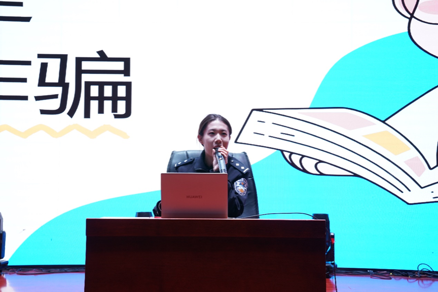 讲座中,张老师围绕当前诈骗形势、常见诈骗类型及手法、受骗心理剖析等主题进行深入讲解,通过视频、图文等形式展现真实诈骗案例,分析案例中的受骗原因,提升学生的鉴别意识和防范能力。