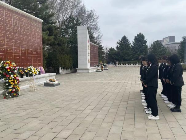 在庄严肃穆的氛围中,全体师生肃立在革命烈士纪念碑前默哀,深切表达对革命先烈的追思之情。向革命烈士敬献花篮,抒发对革命先烈的无限哀思和崇高敬意。