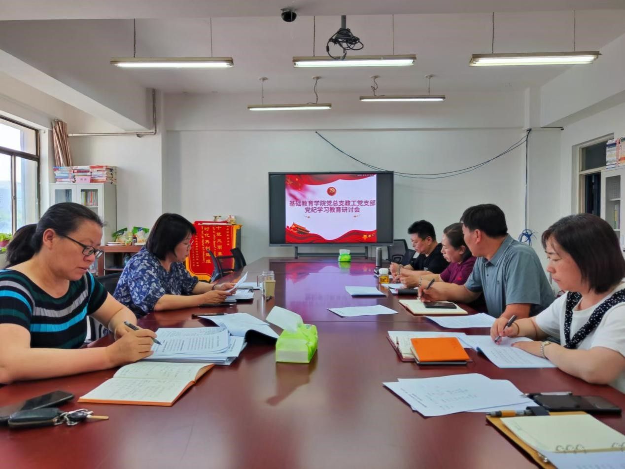 5月20日下午,基础教育学院教工党支部在杜林楼405会议室组织开展党纪学习教育读书班暨教工党支部专题研讨会,教工党支部负责人萨日胡主持会议。会议在前期集中学习、专题辅导的基础上,围绕学习领会新修订的《中国共产党纪律处分条例》开展研讨交流,推动党纪学习教育走深走实。