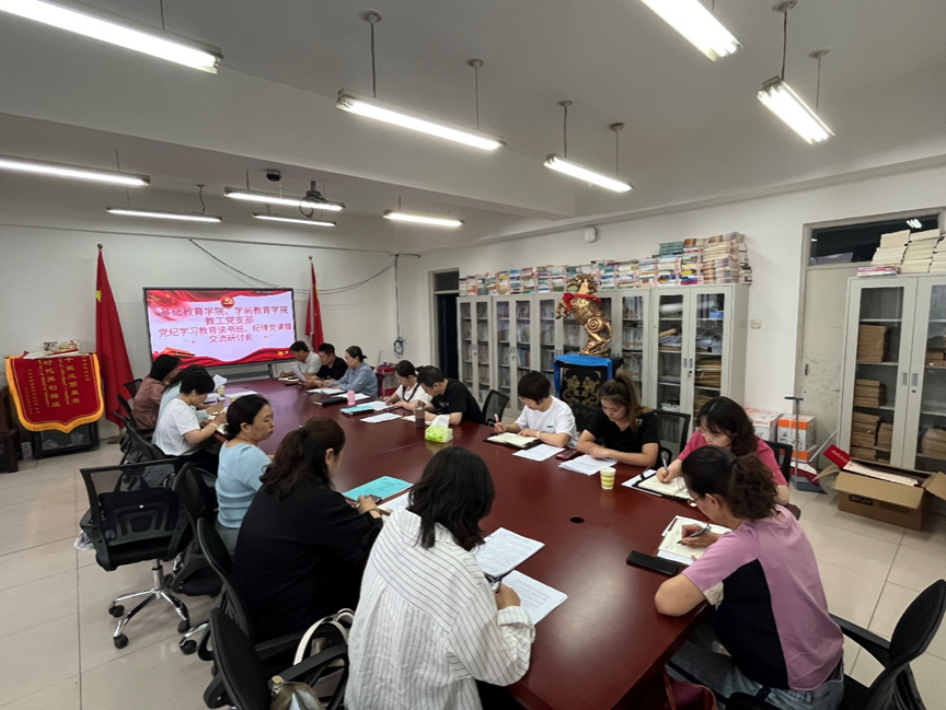 为深入学习贯彻新修订的《中国共产党纪律处分条例》(以下简称《条例》),按照读书班课程安排,5月29日,基础教育学院教工党支部联合学前教育学院教工党支部在都林楼405会议室开展党纪学习教育读书班、纪律党课暨交流研讨会。交流研讨会由基础教育学院党总支负责人萨日胡同志主持。