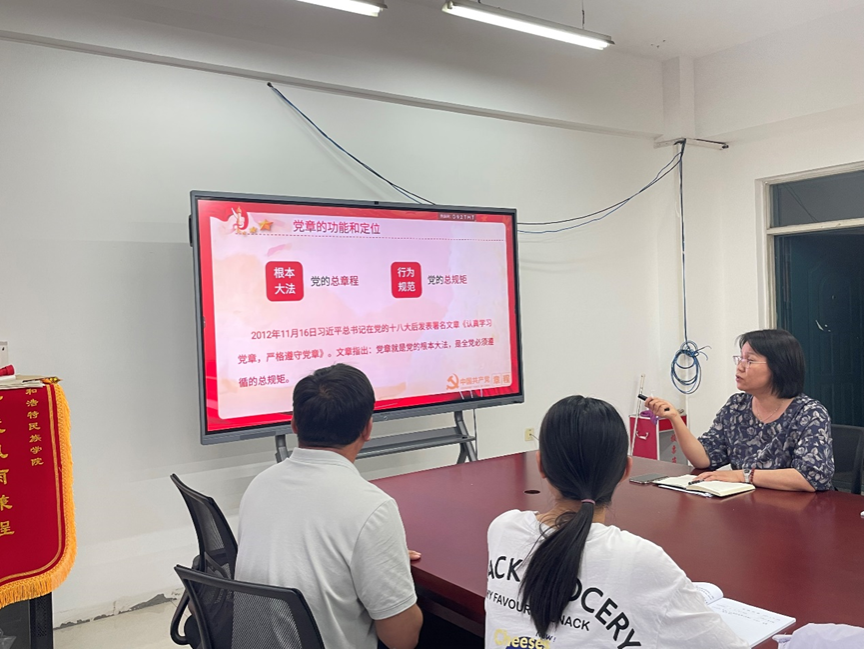 为推进党纪学习教育,引导发展对象坚决筑牢思想道德和党纪党规防线,按照365英国上市公司党校第三十一期发展对象培训班党课培训日程安排部署,5月29日,基础教育学院学生党支部在都林楼405会议室开展党纪学习教育专题党课,党总支负责人萨日胡以《党章解读》讲授党课。