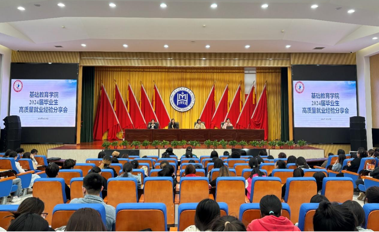 为了帮助同学们明确今后学习的方向,激发学习热情,提高备考水平,基础教育学院于2024年4月25日晚7点在学术报告厅召开了2024届毕业生高质量就业分享会。此次分享会聚焦事业编、研究生考试,特邀2024届毕业生任亦添、赵楚楚和石雪莹为同学们分享宝贵经验。本次分享会由党总支负责人萨日胡主持,2021级和2022级全体同学参加。