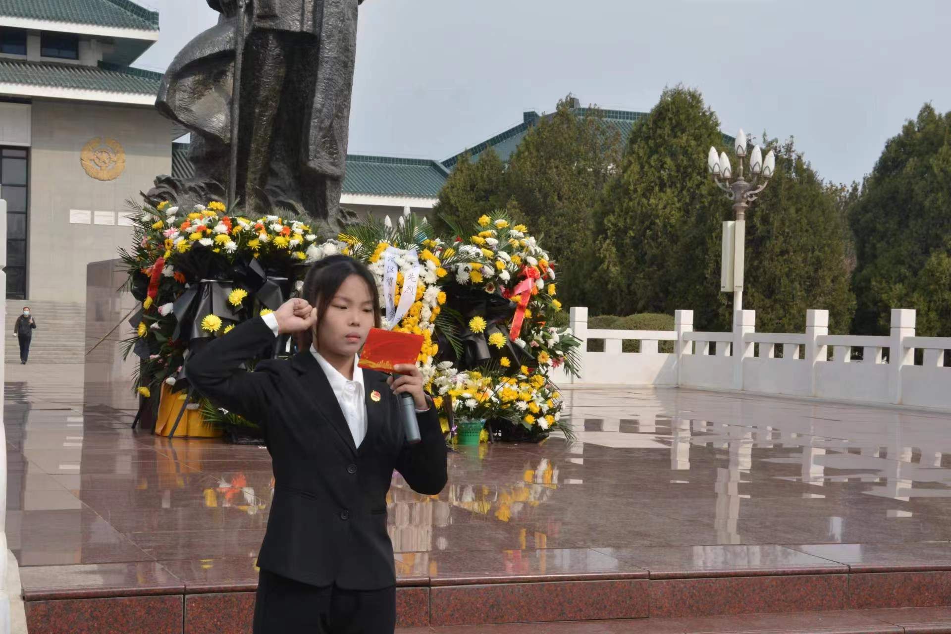 活动第四项,由内蒙古鸿德文理学院利静同学带领全体青年志愿者们重温入团誓词。