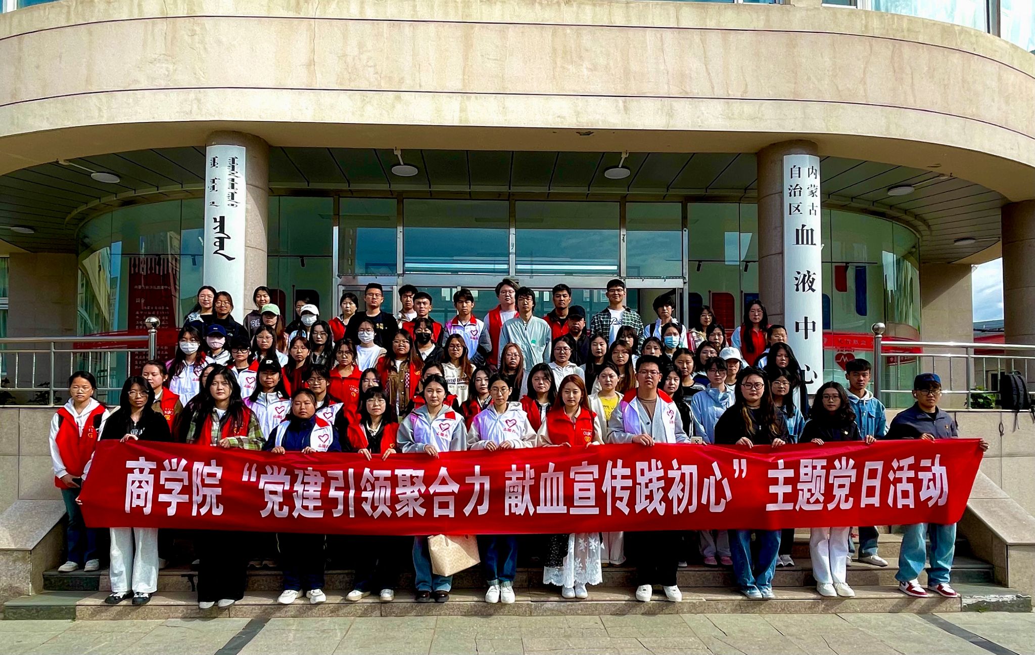 为深入贯彻落实中央八项规定精神,持续改进工作作风、弘扬务实高效导向,5 月 20 日,商学院师生走进内蒙古自治区血液中心开展“党建引领务实风 献血宣传践初心”主题党日活动以实际行动践行"奉献、友爱、互助、进步"的志愿服务精神。