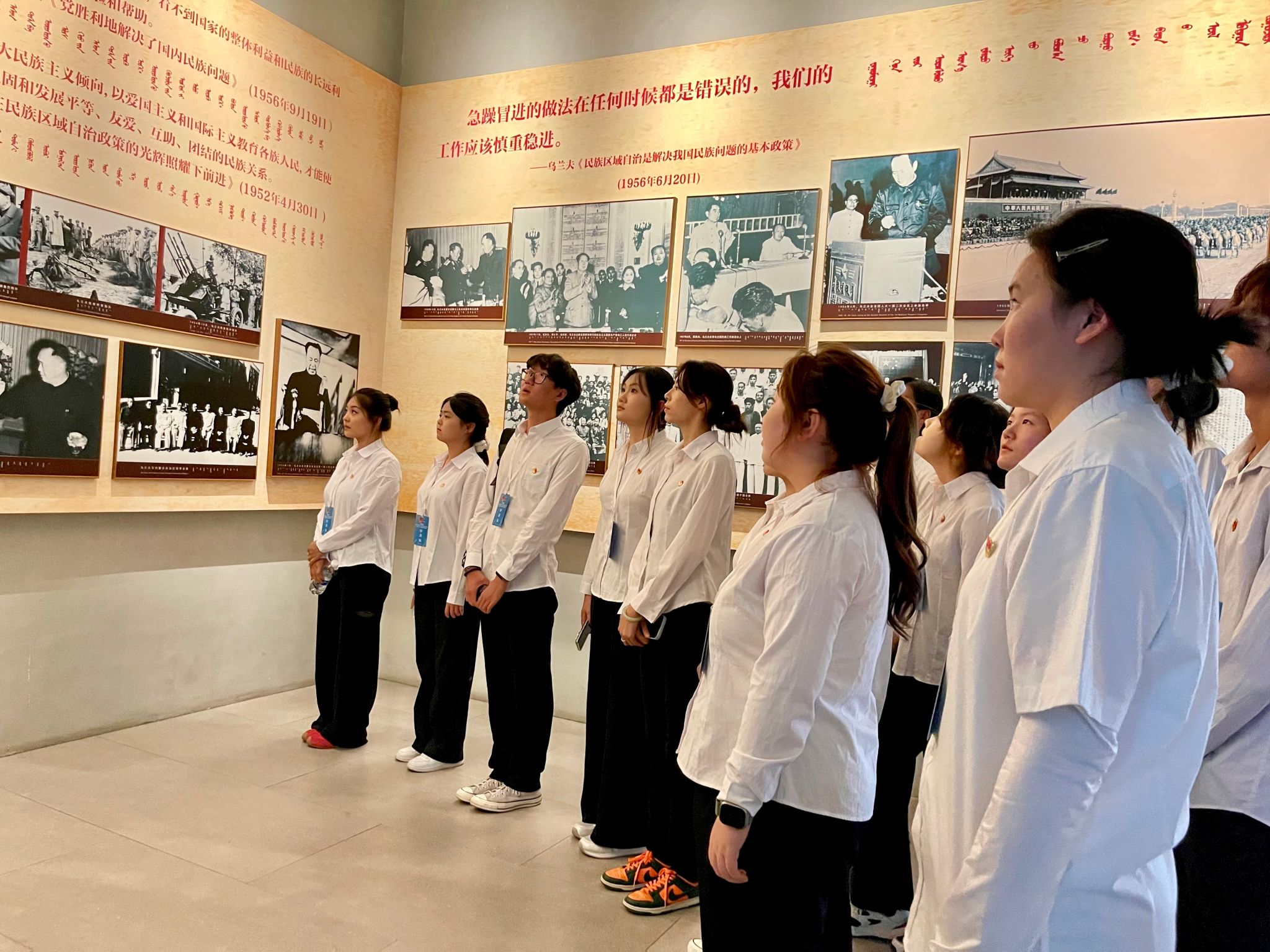 商学院“三下乡”志愿服务队来到了乌兰夫纪念馆,瞻仰乌兰夫同志的肖像,参观馆内的珍贵文物、照片,深入体验红色革命精神。