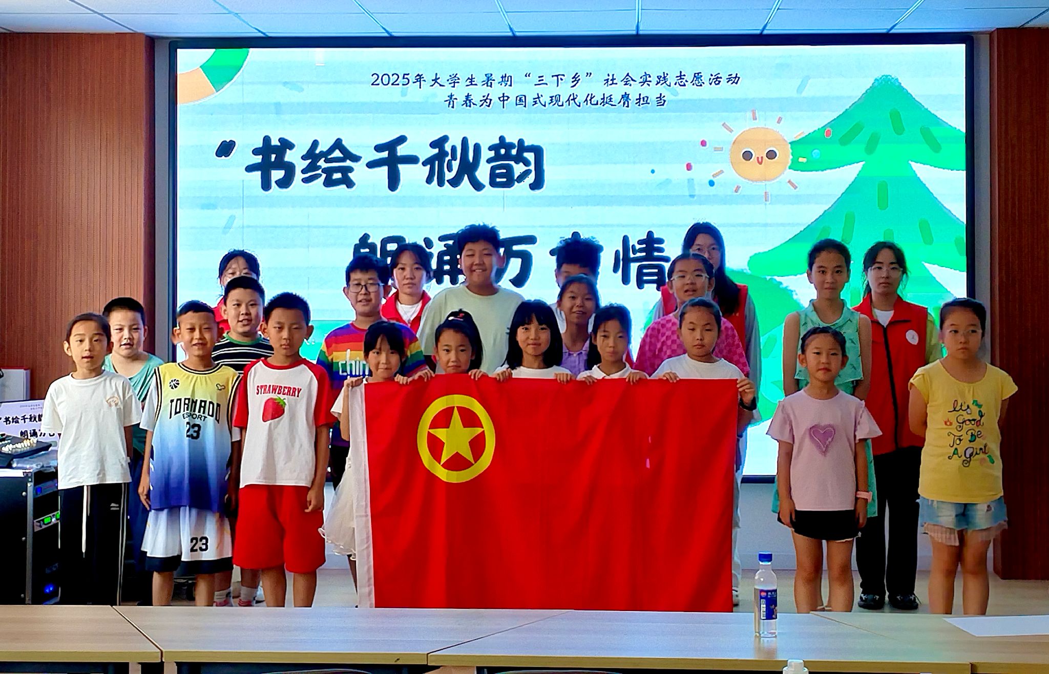 为响应团中央及内蒙古自治区团委 2025 年大学生志愿者暑期 “三下乡” 活动的重要部署,鼓励青年学生投身基层建设,为助力中国式现代化建设,让青春在基层绽放光彩。7月29日,商学院“筑梦北疆红色之旅”志愿服务队联合敖汉青年志愿者服务队走进秀水社区,开展以“书绘千秋韵 朗诵万古情”为主题的支教活动,为孩子们打造了一堂别开生面的文化课堂。