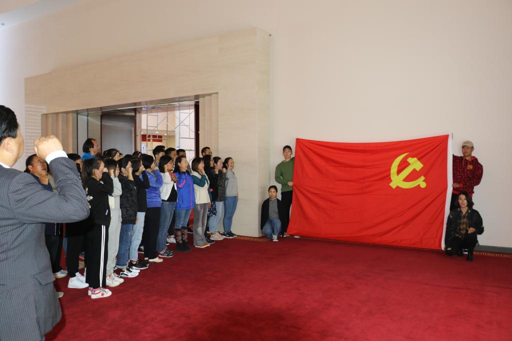 在启动仪式开始之前组织全体师生党员面对党旗重温入党誓词并对内蒙古展览馆“不忘初心,牢记使命”主题教育系列展览进行了参观学习活动。
