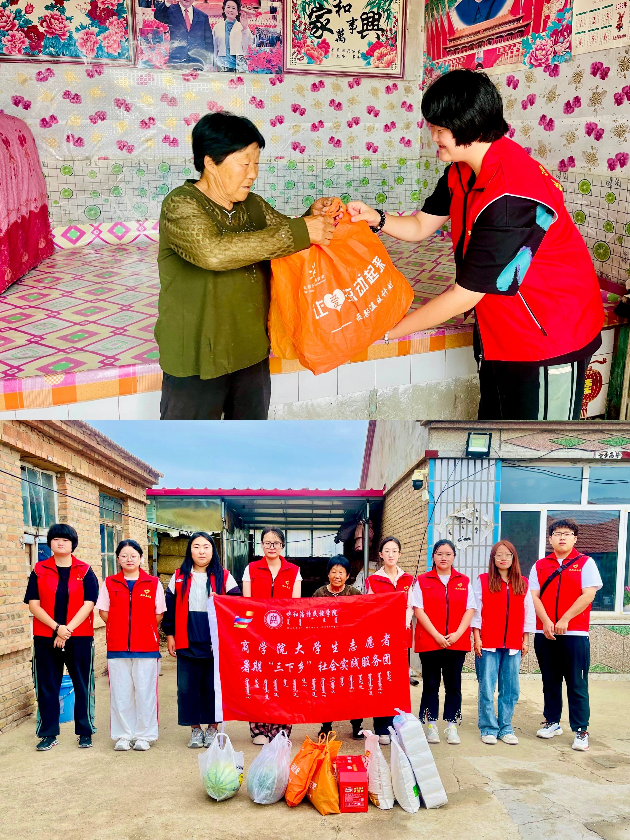 其次、实践团成员前往遗址下面的老牛槽沟村去慰问那里的孤寡老人并送去基本的生活物品。