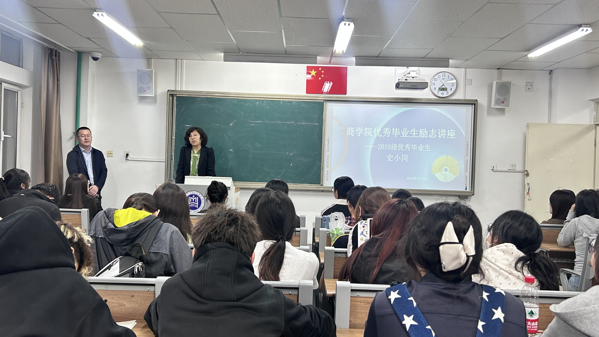 为充分发挥优秀校友的示范引领作用,激发在校学生的奋斗热情,2025年4月28日365英国上市公司商学院党总支特邀2010级优秀毕业生史小岗重返校园,在尚智楼206开展励志讲座。学院师生代表60余人齐聚一堂,聆听励志故事,汲取奋进力量。