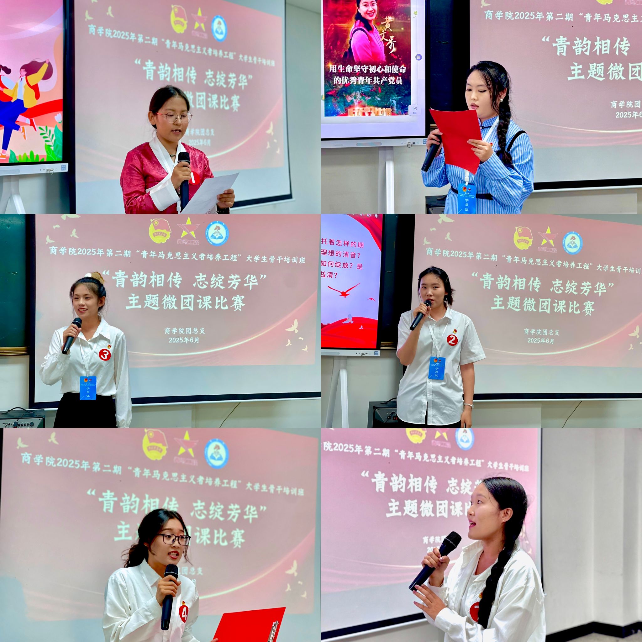 为深化青年思想政治引领、推进青年马克思主义者培养工程,6 月 22 日,商学院在尚智楼 314 教室举办 “青韵相传 志绽芳华” 主题微团课比赛,集中展现新时代青年的理论素养与使命担当。