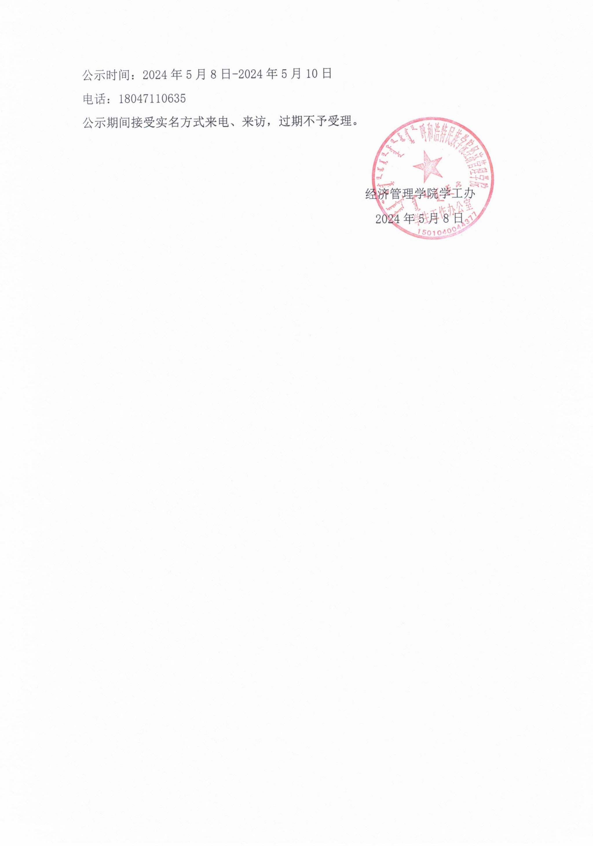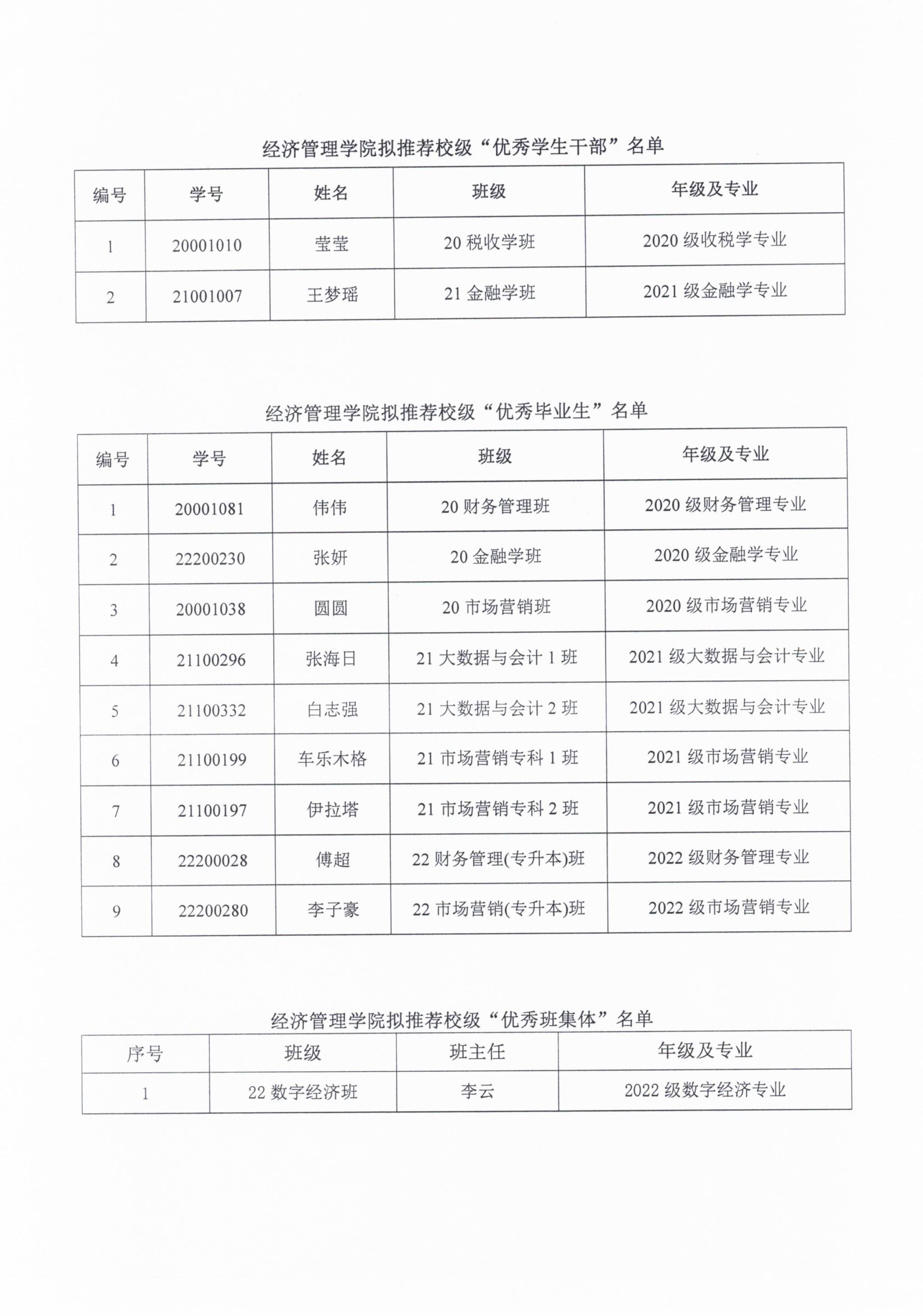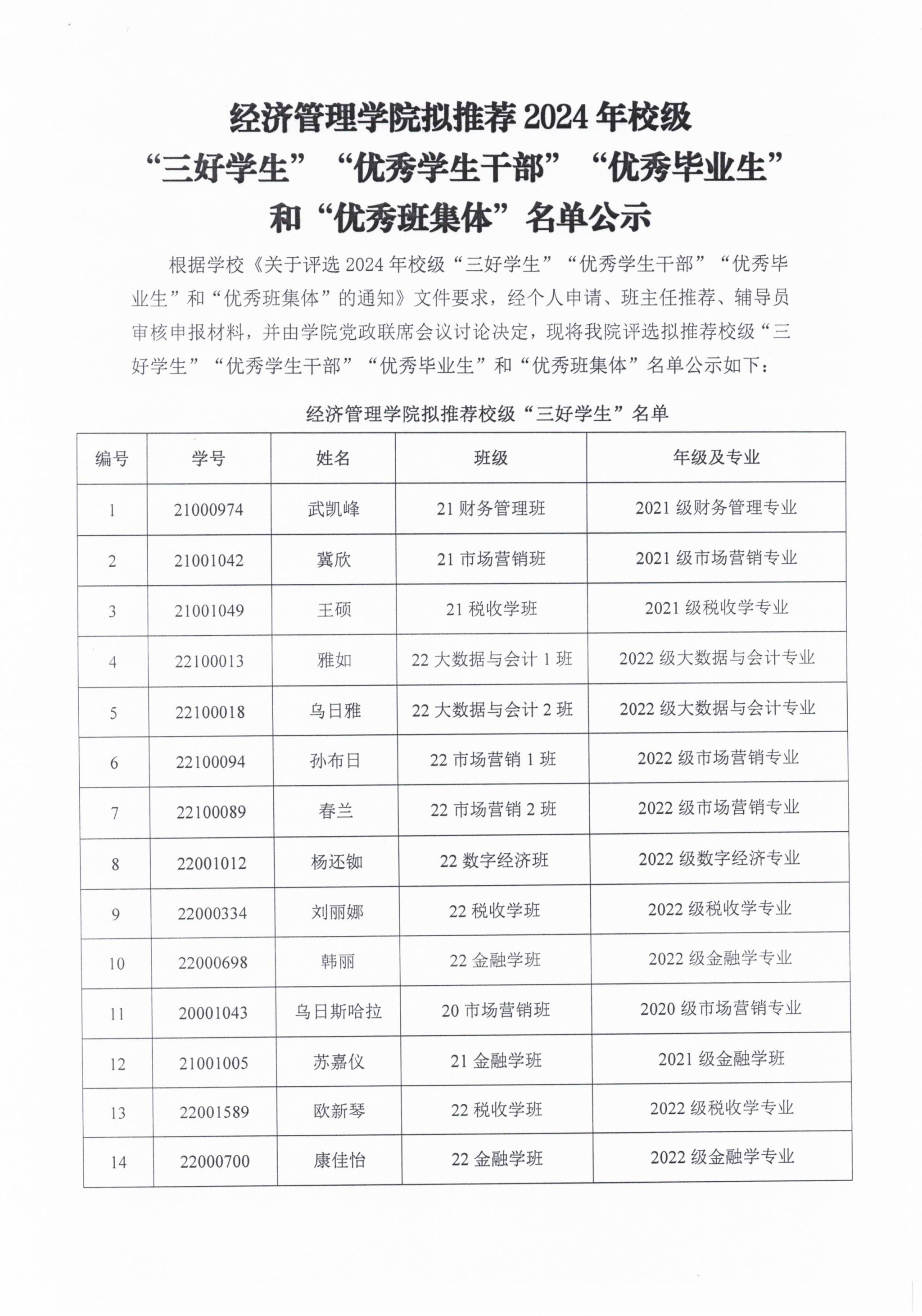 经济管理学院拟推荐2024年校级 “三好学生”“优秀学生干部”“优秀毕业生”和“优秀班集体”名单公示
