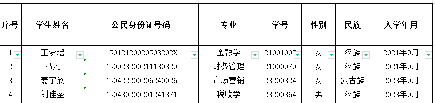 2023-2024学年商学院自治区奖学金获奖学生初审名单表