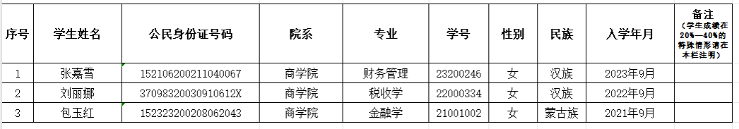 2023-2024学年商学院自治区励志奖学金获奖学生初审名单表