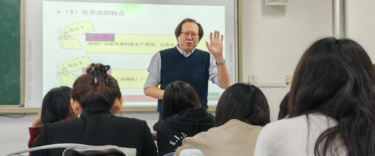 代勤老师讲解《成本会计学》课程的“产品成本计算的辅助方法—分类法”。课堂上代勤老师巧妙运用企业的数据案例,将抽象的会计知识转化为生动的案例,充分调动了学生的积极性和课堂的活跃氛围。课后,老师们开展了深入的教学研讨,代勤老师分享了课程设计思路、教学方法的选择等方面进行了交流,教学改革有了方向和思路。