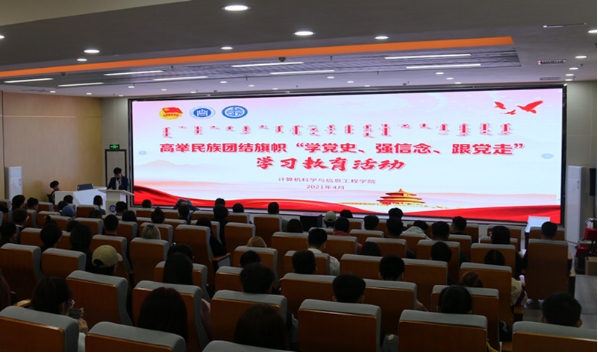 专职辅导员包巴雅力格宣读了高举民族团结旗帜,“学党史、强信念、跟党走”学习教育活动方案