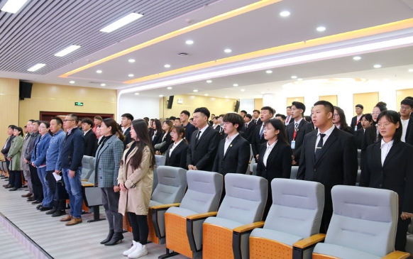 2021年4月28日,计算机学院在图书馆一楼组织召开“铸牢中华民族共同体意识,同心共筑中国梦”第二届校园文化节表彰大会暨“高举民族团结旗帜,‘学党史、强信念、跟党走’”学习教育活动部署会,我院党总支书记、院长、教学科研办公室主任、专职辅导员、部分班主任代表、校企合作企业代表、班长、团支书、学生会全体成员、获奖人员代表参加本次会议,会议在全体人员高唱《国歌》中拉开帷幕。