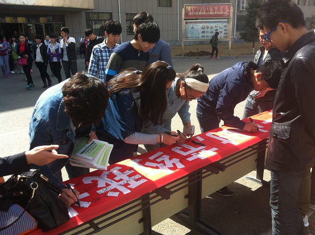 3、2014年3月29日中午12:00在新教楼门前面向全院师生开展“地球一小时,节约我光荣”的签字仪式。