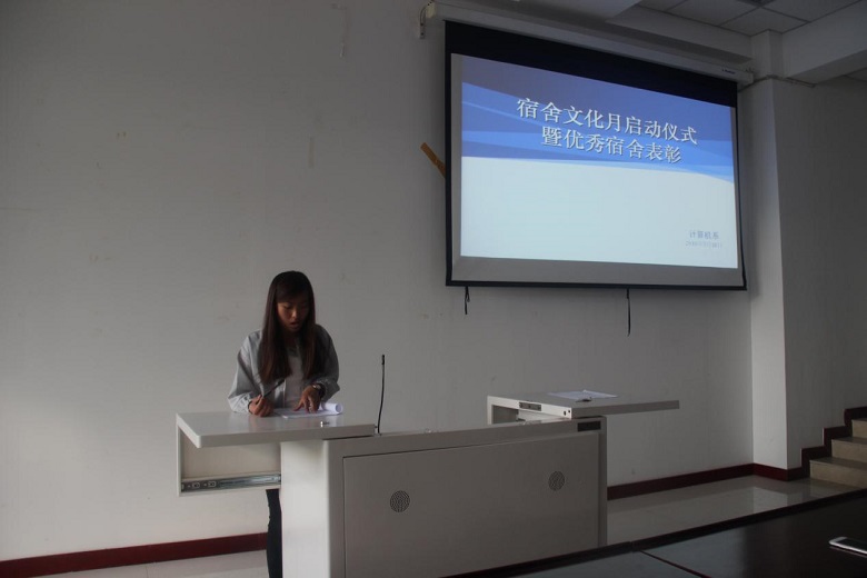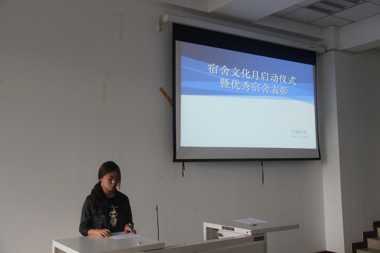 为促进学生宿舍文化建设,加强宿舍管理, 5月18日,计算机系在都林楼116教室召开宿舍文化月启动仪式暨优秀宿舍表彰大会。计算机系团总支书记,全体学生会成员,各班班长及团支书、宿舍长参加了本次活动。