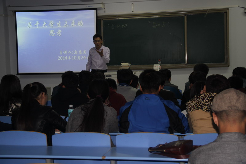 为让广大新生尽快适应大学生活,养成良好的自主学习习惯,于2014年10月24日晚,在新教学楼202教室,我系邀请乌恩其老师为2014级计算机科学与技术1班、信息管理与信息系统、少数民族预科3个班级作“关于大学生未来的思考”主题讲座。