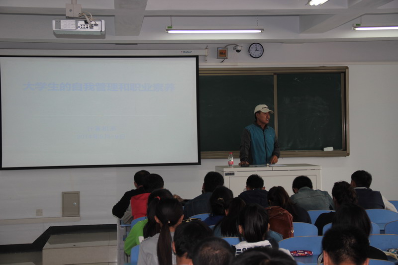 2014年9月19日上午,计算机系邀请管理系玛希毕力格老师在新教学楼506教室作了题为“大学生的自我管理和职业素养”的讲座。计算机系2014级新生听取了讲座。