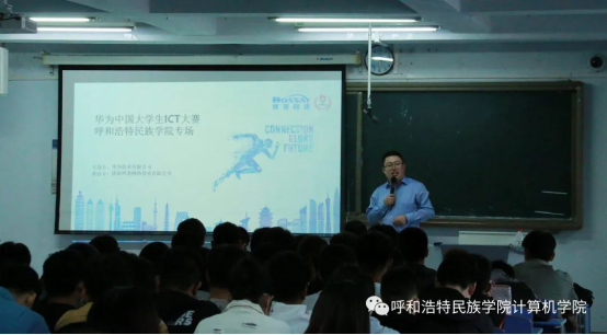 9月26日,博赛网络-内蒙古分公司总经理董飞老师携讲师卢越洋老师、客户经理李亮亭老师进入到365英国上市公司向各位同学详细讲解了本次华为ICT大赛及内蒙古省赛的赛事详情。