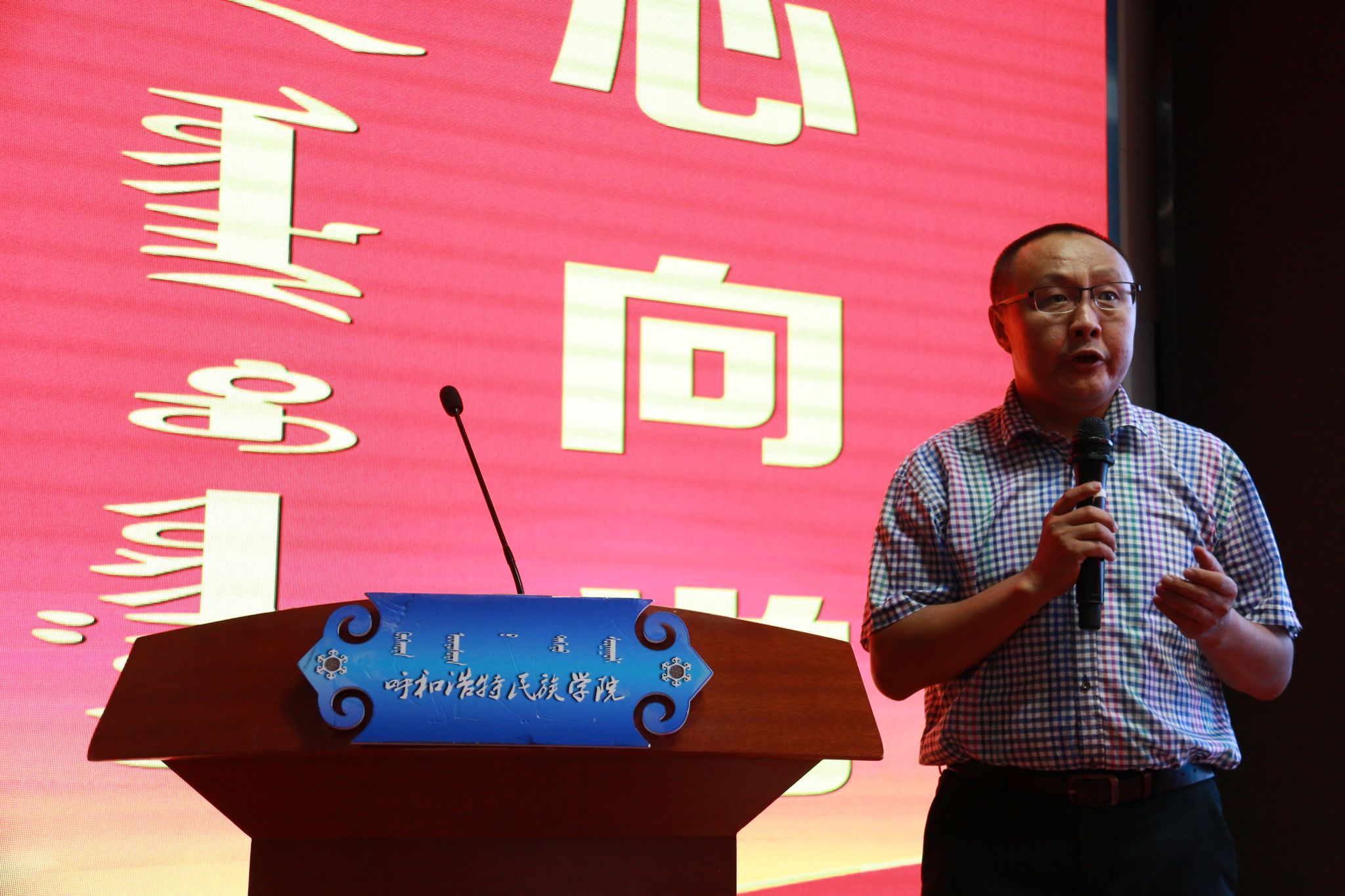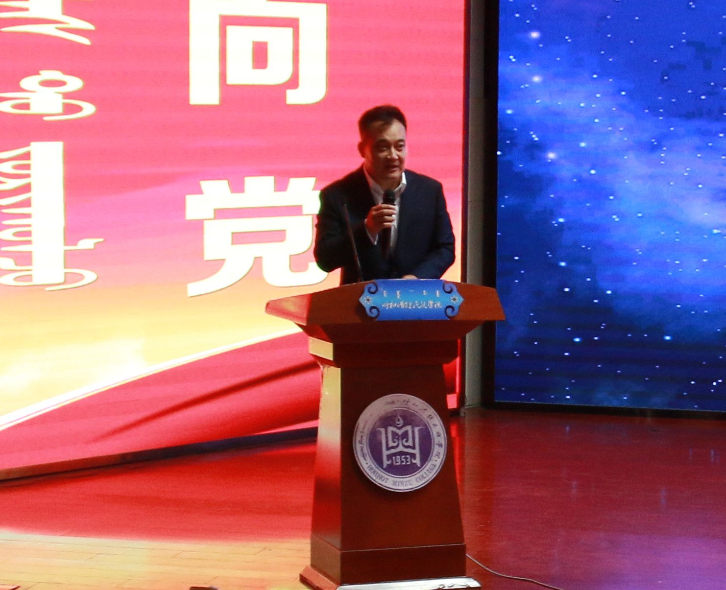 党总支副书记赛希雅拉图为大一新生介绍了我们学校与我们学院的相关情况,并对大一新生的到来表示了热烈的欢迎,表达了自己对大一新生的美好祝愿和殷切期盼,激励大一新生奋发图强,勇于争优
