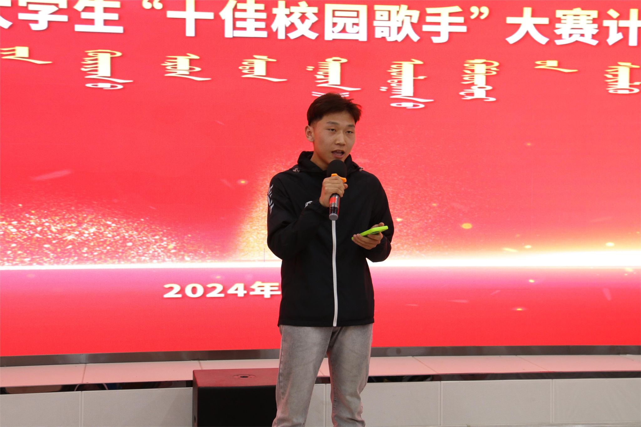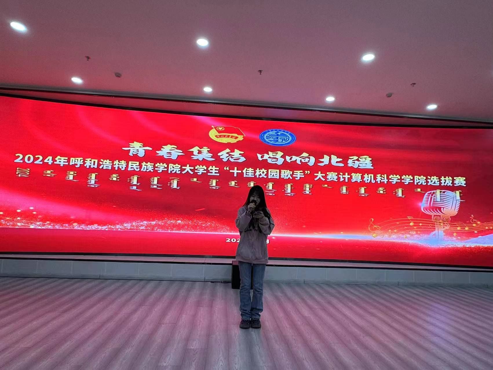 大学生“十佳校园歌手”大赛计算机科学学院选拔赛。本次比赛由计算机科学学院团总支书记包巴雅力格、院学生会主席团成员裴佩、赵夏雪担任本次比赛评委。