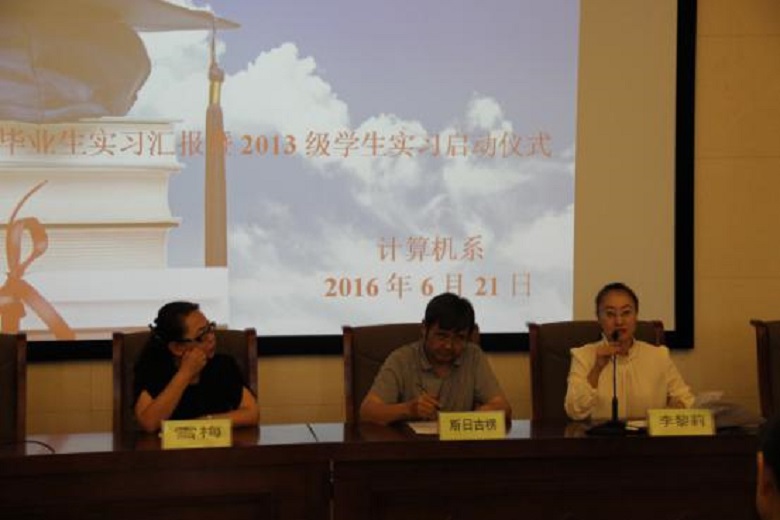 时光荏苒,转眼又到了毕业季。为了让悉心培养的学生以坚实的步伐迈向新的征程,计算机系于2016年6月21日,在图书馆一楼报告厅举办了2016届毕业生实习汇报暨2013级学生实习动员会。2016届毕业生和2013级学生共200余人参加会议,北京东方智业公司、达内时代科技公司、计算机系领导和部分老师出席会议。