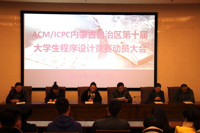 2014年11月17日晚,计算机系在图书馆一楼报告厅召开ACM/ICPC内蒙古自治区第十届大学生程序设计竞赛动员大会。计算机系领导班子、办公室主任、计算中心主任、蒙文信息处理教研室主任及团总支书记出席会议,报名参赛的38支队伍参加了动员大会。会议由计算机系副主任主持。
