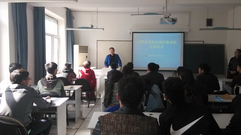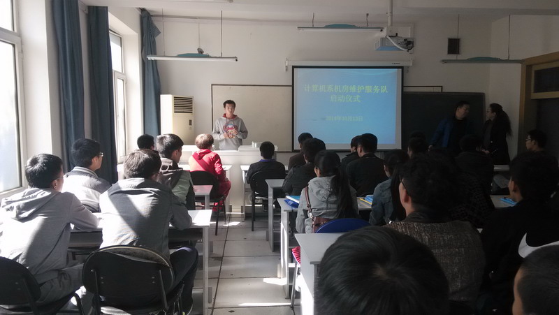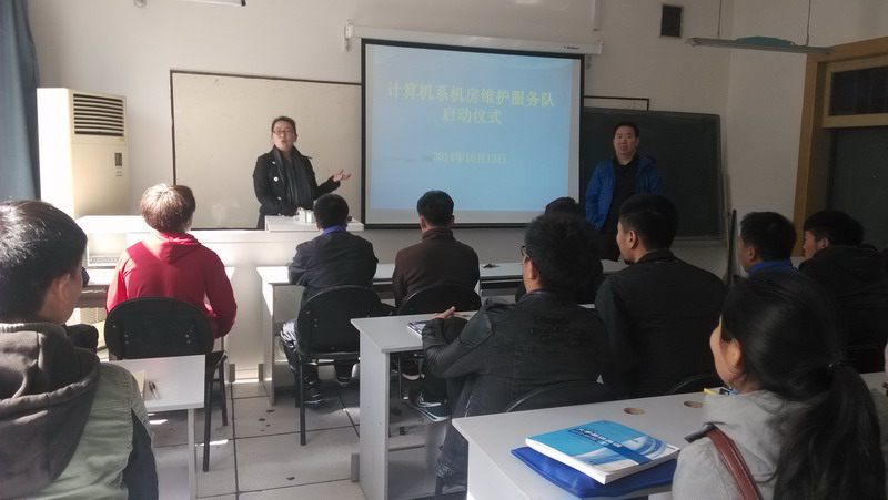 2014年10月13日,计算机系在西教学楼213教室举办了机房维护服务队启动仪式。2014级计算机科学与技术、蒙文信息处理和少数民族预科班共30余名报名参加服务队的学生和计算机中心主任和团总支书记出席了会议。启动仪式由计算机系党总支书记主持。
